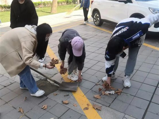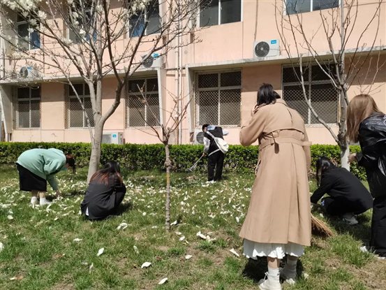 在医学部护理学院19级各班的志愿者们在餐厅门口集合,集合完毕后,大家先到茶炉房附近领取了扫除用具,清点数目后,大家便在各自负责的区域展开了清扫工作,大家仔细清扫垃圾,并拾取草丛中掉落的枯树叶和花瓣,美化校园环境。